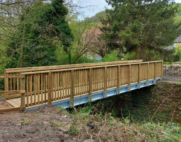 A 10 metre Bison footbridge has replaced a failed bridge adjacent to the John Smedley Lea Mill factory in Matlock, Derbyshire.